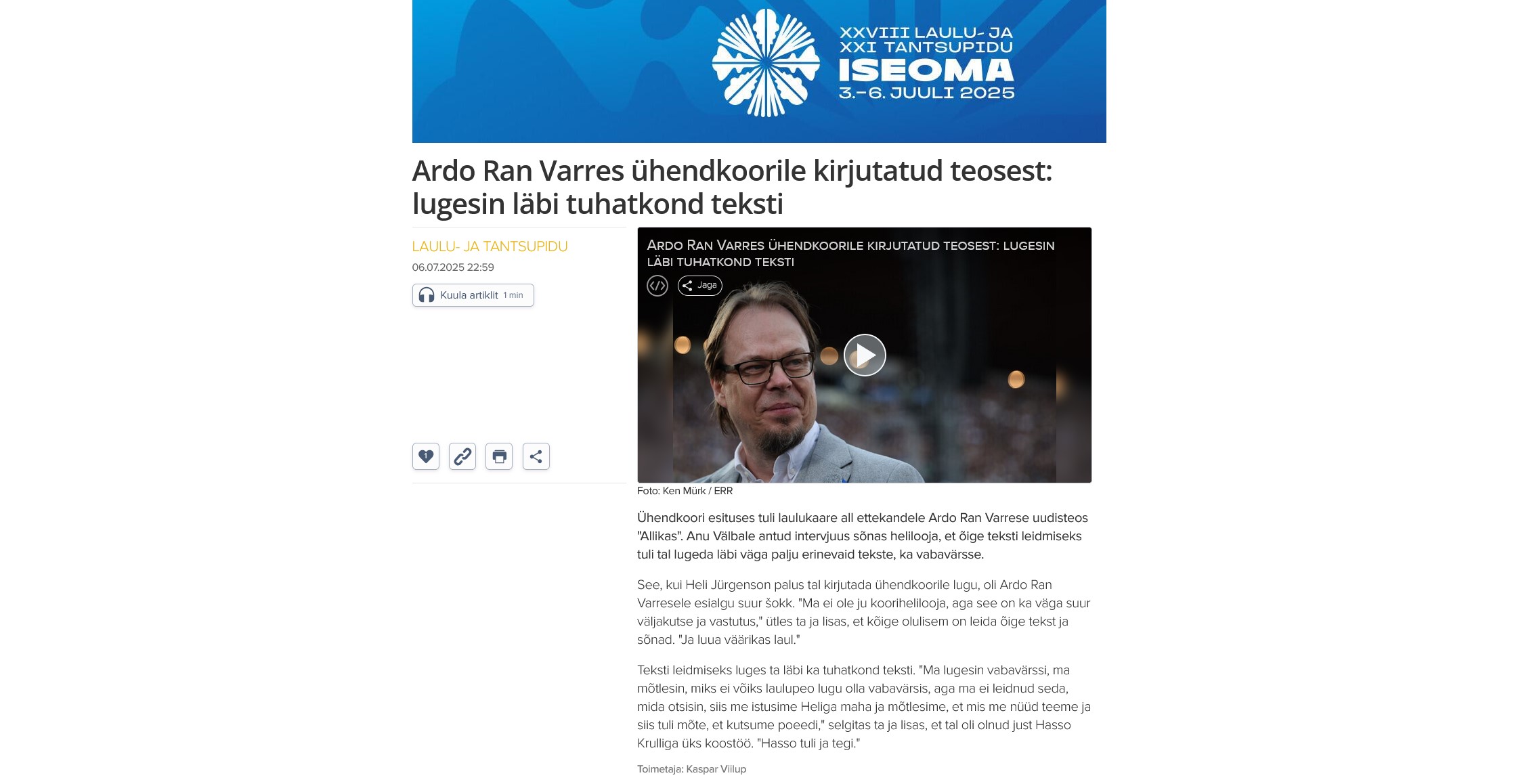 Ardo Ran Varrese saatesari tähistab Eesti Heliloojate Liidu 100. sünnipäeva.