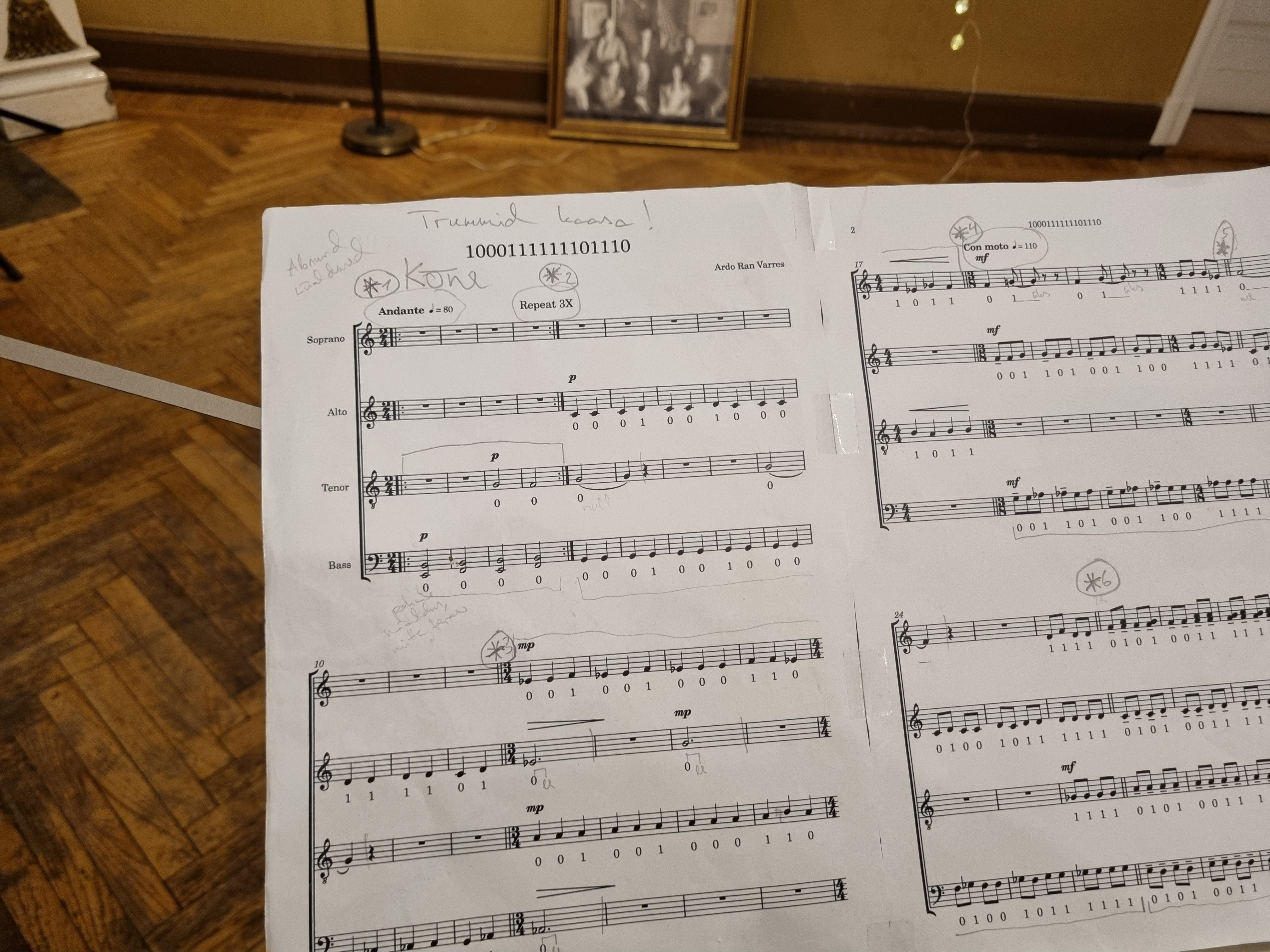 Inspired by this, I composed a piece for Trio Lucaria, featuring flute, bassoon, theorbo, and also a Tibetan singing bowl. I was intrigued by the use of quarter tones and glissandi in the melody, as well as achieving a certain monotonous meditativeness in the middle section of the piece. Historically, Estonia and Tibet share many similarities. The year 2025 has begun with major cataclysms — we recall the fires in Los Angeles, and the earthquakes in Tibet and Myanmar. Compassion is the value that unites us and, ideally, dissolves the barriers between human groups.